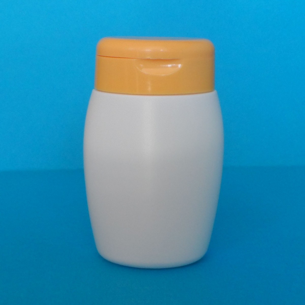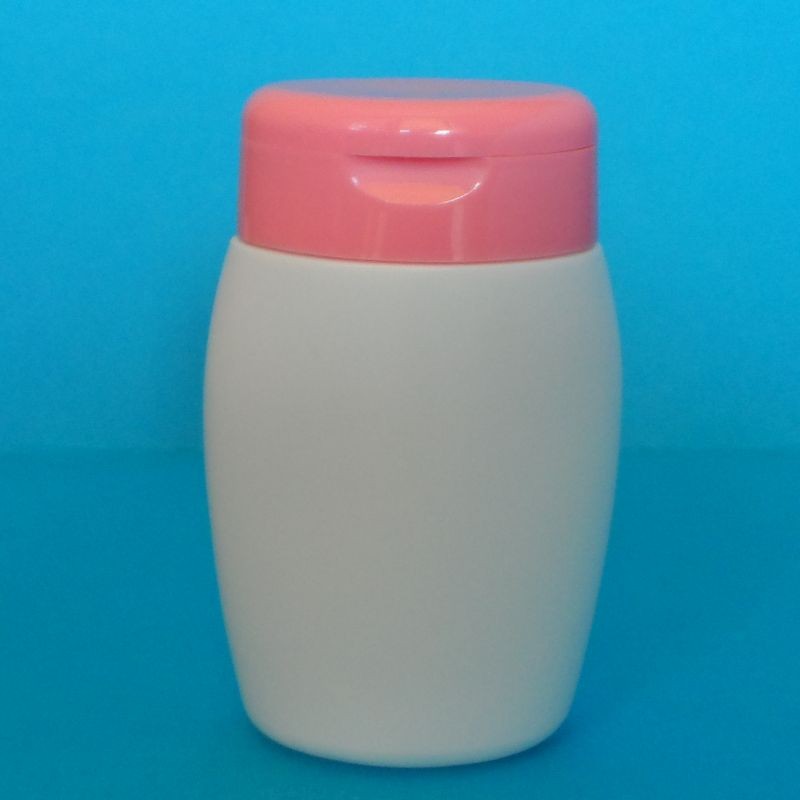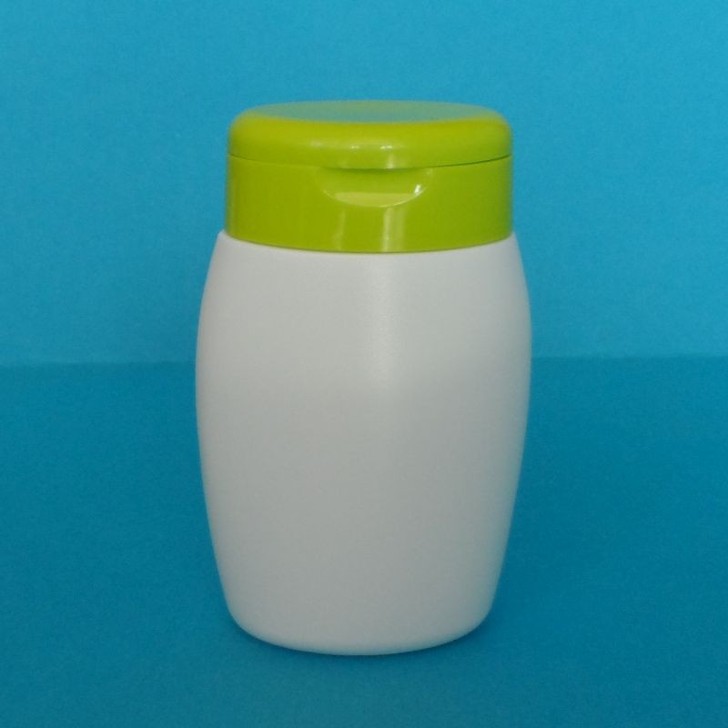 200ml-es fehér ovális flakon ráütős flip-top kupakkal.